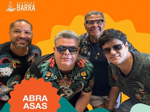 O público que estiver no Shopping Barra nesta sexta-feira (23) tem encontro marcado com a boa música e a vibração contagiante do Abra Asas. Das 18h às 20h, o grupo sobe ao palco para um show especial que promete animar o início do fim de semana com repertório envolvente e clima de celebração.